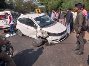 गुड़ारिया में बोलेरो–टियागो की आमने-सामने टक्कर, एयरबैग खुलने से टला बड़ा हादसा