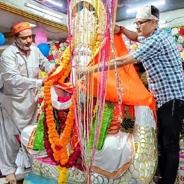 भगवान श्री झूलेलाल के 25 वें चालीहा महोत्सव में पहुंचे विहिप पदाधिकारी,भगवा चोला ओढ़ाकर भगवान का लिया आशीर्वाद।
