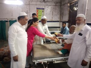 इस नेक पहल के तहत समिति के युसूफ खान,हाजी अब्दुल वाहिद,यूनुस खान, सल्लू भाई,यासीन खान, इसराइल भाई,अब्दुल गफ्फार भाई,और डॉ.जैद खान ने सक्रियता से हिस्सा लिया। जिला चिकित्सालय की तरफ से डॉक्टर शुभम पटेल,डॉ. आकांक्षा वाणी एवं नर्स स्टाफ ने भी इस सेवा कार्य में सहयोग किया।कार्यक्रम में अस्पताल में भर्ती सभी मरीजों को बगैर किसी भेदभाव के अनार और केले वितरण किए गए, जिससे मरीजों और परिजनों के चेहरे पर खुशी और उम्मीद की चमक देखी गई। इस पहल ने दिखाया कि मानव सेवा में ही सच्ची खुशी और समाज में भाईचारे की असली ताकत छिपी है।