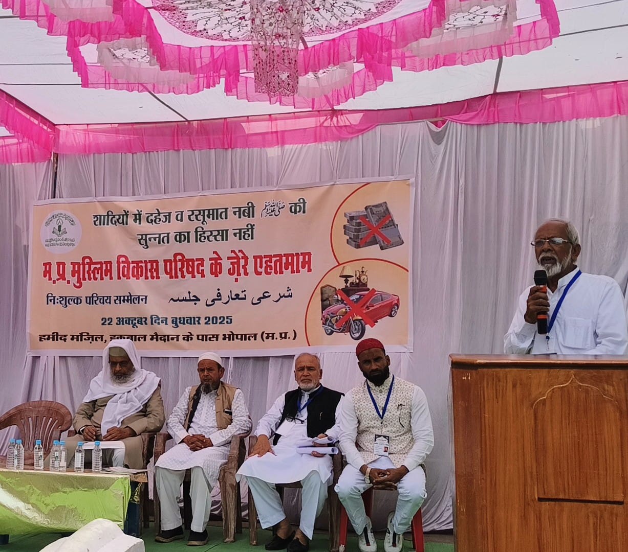 मध्यप्रदेश की राजधानी भोपाल ने फिर एक बार पूरे प्रदेश को अपनी तरफ आकर्षित कर एक नई क्रांति को जन्म दिया है।बुधवार को भोपाल के हमीद मंजिल शादी हॉल में अनोखा और पहला परिचय सम्मेलन संपन्न हुआ,जिसमें ना कि सिर्फ मध्यप्रदेश बल्कि उत्तर प्रदेश,छत्तीसगढ़,महाराष्ट्र,एवं देश के अलग-अलग राज्यों से भी मुस्लिम युवक युवतियों ने रजिस्ट्रेशन करवा कर नई क्रांति के सूर्योदय की नींव रखी है।मौका था मध्यप्रदेश मुस्लिम विकास परिषद द्वारा आयोजित तार्रुफी इज्तेमा (परिचय सम्मेलन)का जिसमें बड़ी संख्या में मुस्लिम समाज ने शिरकत कर दहेज के खिलाफ अपने रुख को स्पष्ट करते हुए दहेज जैसी कुप्रथा को समाप्त कर समाज से दूर करने के लिए समाज को जागृत किया।यह देश का पहला परिचय सम्मेलन था जिसमें यह स्पष्ट कहा गया था कि इस परिचय सम्मेलन में वही रजिस्ट्रेशन कर सकता है जो दहेज ना लेगा और ना ही देगा,जिसमें परिषद को उम्मीद से ज्यादा सफलता हासिल हुई।इस परिचय सम्मेलन में लगभग 275 से भी अधिक युवक युक्तियां ने अपने रजिस्ट्रेशन करवाए थे,इस परिचय सम्मेलन के जरिए लगभग 36 परिवारों ने आपस में मिल बैठकर रिश्ते कायम करने की राह पर अग्रसर होते हुए सहमति दी है।