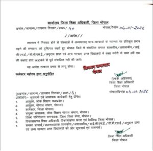 प्रदेश में पढ़ रही कड़ाके की ठंड के मद्दे नजर बच्चों की सुरक्षा को देखते हुए भोपाल जिला शिक्षा अधिकारी एवं हरदा जिला शिक्षा अधिकारी ने कलेक्टर के अनुमोदन से सोमवार को सभी शासकीय, अशासकीय,स्कूलों में कक्षा नर्सरी से आठवीं तक के बच्चों का अवकाश देने का पत्र जारी किया है।परंतु अभी तक नर्मदापुरम जिले से ऐसी कोई सूचना प्राप्त नहीं हुई है, जबकि नर्मदापुरम ज़िले में भी ठंड का तांडव चल रहा है जिसके घेरे में आने से बच्चों को स्वास्थ्य हानि पहुंचाने की प्रबल संभावना है,बावजूद इसके ना जिला शिक्षा अधिकारी ना जिला प्रशासन ने अभी तक अवकाश की कोई घोषणा नहीं की है।